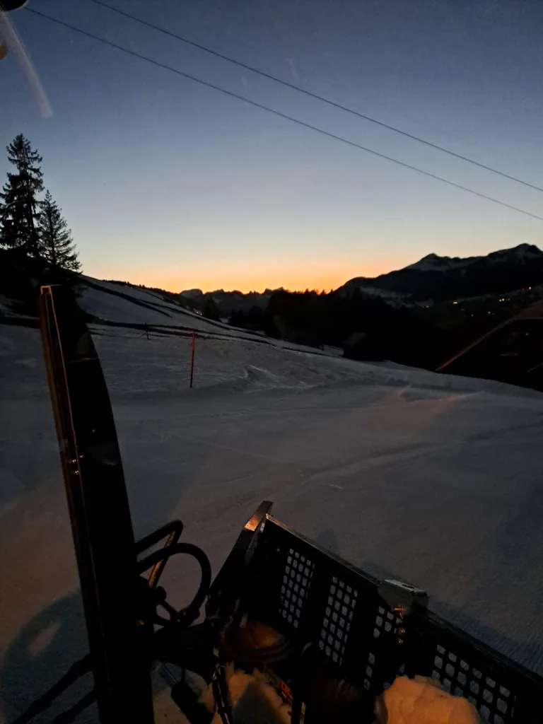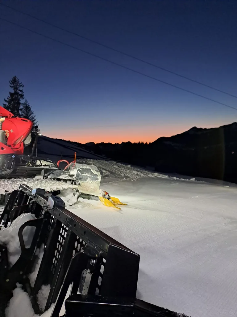 Am Abend durfte ich die Pistenmaschinen-Fahrer auf ihrer Schicht begleiten. Das war ein besonderes Erlebnis. Es war beeindruckend zu sehen, wie präzise die Pisten präpariert werden und wie gross und kraftvoll diese Maschinen sind.